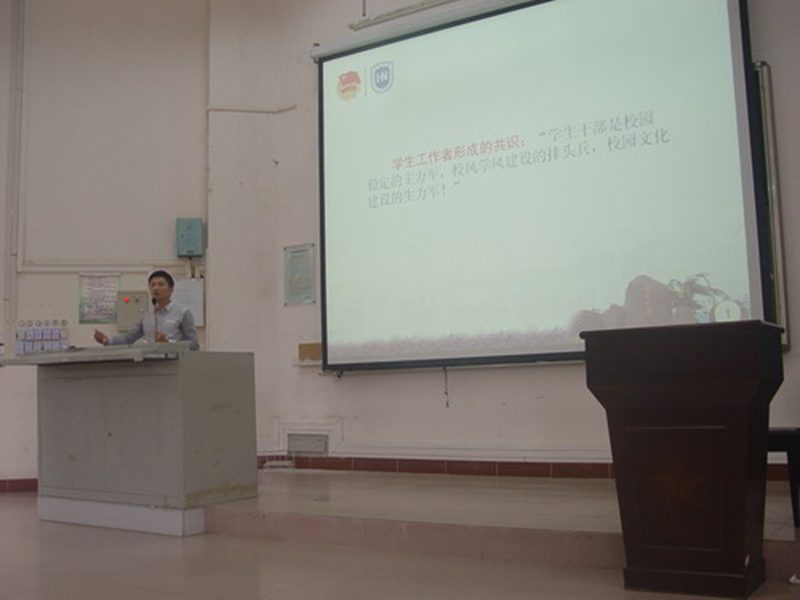 活动现场,陈广锐副书记就校园组织与校园文化的关系,从多个层面,多个角度,结合自己学生时代的工作经验,以及某些部门存在的缺陷对所有学生干部的工作提出了具体的指导和明确的要求,使学生干部们在工作生活中能够有理可依,有样可学。本次演讲内容还围绕物质、精神、制度、行为等方面列举了丰富的例子供学生干部们参考学习,尤为强调了创新的作用以及个人独立思维的重要性。在校园文化系统的参与、组织、管理以及职能上,还指出干部们要时刻具有危机意识,应不断调研,积极进取,在提高个人能力的同时强化组织职能。除此之外,还要结合学院专业发挥所长、强化优势、突出特色、培养品牌,建立起自身的长效机制。活动最后,陈广锐副书记还就某些细节方面像方案的撰写形式,工作的注意事项以及活动末尾总结等提出了小小建议,并祝愿所有13级学生干部能够在自己的部门越做越好。