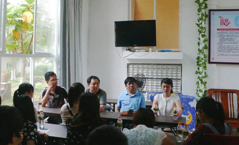 在随后的交流中,美兰区人民街道工委书记刘旭给在场的志愿者们介绍了社区的主要构成及现状,分享了许多在社区工作中发生的故事。他明确了志愿队伍的构成机制,同时希望大学生志愿者们能成为网格化管理的主力军,并发动社区居民的积极性,和群众们一同建设和谐社区。刘书记对“天天有活动”和“逢五有专题”这两个板块的志愿活动寄予厚望。