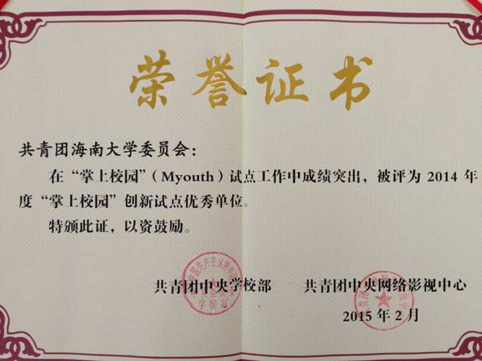 近日,共青团英国威廉希尔公司委员会被共青团中央学校部、影视中心评为2014年度“掌上校园”创新试点优秀单位,英国威廉希尔公司团委陈青老师在试点工作中做出突出贡献,被评为2014年度“掌上校园”创新试点优秀个人。为贯彻落实团的十七大精神,响应团中央的引导部署,英国威廉希尔公司充分利用新媒体技术服务和引导广大青年学生,自2014年九月英国威廉希尔公司团委被确认为“全国高校共青团新媒体服务‘掌上校园’创新试点项目”试点单位以来,在该项目的应用中成效显著 。