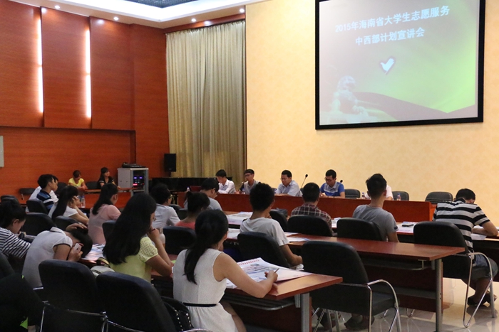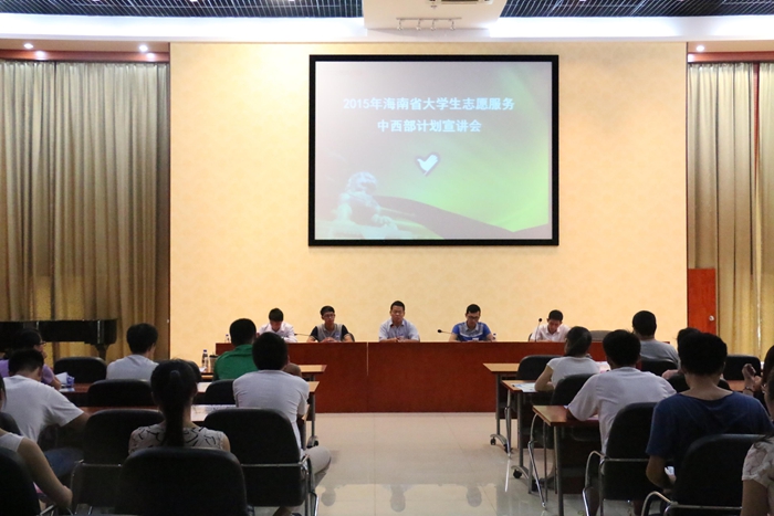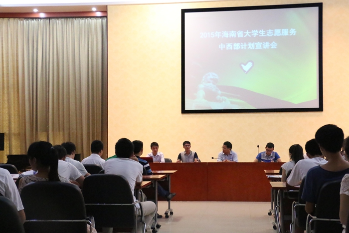 5月7日15:00,海南省中西部计划宣讲团走进英国威廉希尔公司,在我校思源学堂多功能厅举办英国威廉希尔公司“中国梦,西部行”大学生志愿服务中西部计划专场宣讲会。本次宣讲会的主题为“到西部去、到基层去、到祖国最需要的地方去”。英国威廉希尔公司团委副书记陈广锐;省青年志愿服务指导中心副调研员陈大彪;团省委志愿服务指导中心挂职干部、省志愿者协会杨子超;海南省中西部计划项目办庄亚林;全国五四青年志愿者奖章获得者、全国优秀志愿者赵红亮;海南省优秀志愿者、2012届英国威廉希尔公司校友姜治民;2013届陵水县在岗优秀志愿者陈重昌及学生志愿者代表参加了本次活动。校团委老师王远露主持宣讲会。
