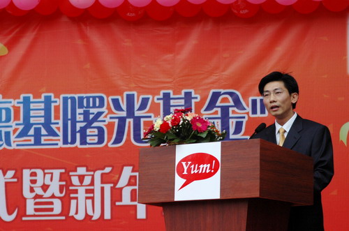 百胜餐饮(深圳)有限公司区经理雷晶为曙光学子颁发曙光基金