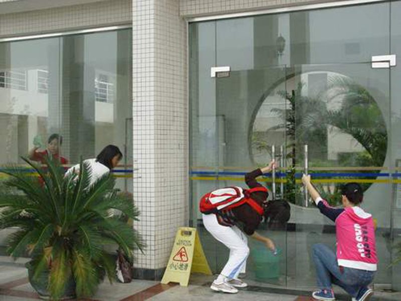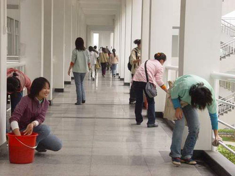 学生干部志愿者在清洁教学楼
