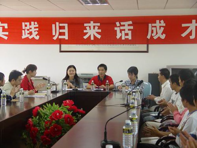 12月7日下午3:00,“实践归来话成才”交流座谈会首场在旅游学院会议室举行,参加座谈会的同学约有七十余人。主讲人为暑期社会实践优秀代表,“百名学生党员挂职百村服务新农村建设实践活动”澄迈分队的黄跃林、儋州分队的孙大伟、定安分队的盖文静。《中国青年报》驻海南记者站站长任明超、校团委吴昊老师出席了座谈会。座谈会由校团委创新院学生干部孙颖主持。 黄跃林同学首先为大家介绍了此次暑期社会实践的具体内容。此次活动是在“践行荣辱观,服务新农村”主题的指导下,围绕“六个一”开展的,即政策宣讲、支农、支教、帮困帮扶、整理文书和课题研究,并详细介绍了其中的几个方面。他以“新、累、值”三个字来概括了自己的实践感受。孙大伟同学主要从农民的消费观念和生活习惯方面谈了自己的感受。他从实践中了解到当地农民消费、理财观念比较落后,法律意识淡薄,计划生育观念不强,认为解放农民思想才是建设新农村的关键,并提倡在场的同学都应参与这种实践活动来锻炼自己的能力。盖文静同学向大家详细介绍了支教的过程,并针对农村的基础教育现状谈了自己的看法。 三位同学都提到,社会实践由于具有其内容的生动性、形式的直观性,对人的心灵有很强的震撼力,能为学生得到综合锻炼提供条件,因此是学生成长成才和素质培育过程中不可缺少的重要环节。他们认为这次实践有利于自己的世界观、人生观、价值观得到提升,使自己能全面客观地去观察、分析、解决问题,用历史的观点看待社会和人生,能够正确评价现实生活中的各种现象和思潮,因此对自己的成长非常有帮助。他们说,社会实践可以激发同学们团结、求实、博学、奋进的成才意识,是大学生与社会零距离接触的难得机会,是真正的理论联系实际,是大学生检验自己的一种方法,也是对大学生的一种考验。他们建议同学们积极参与社会实践,将自身成长成才与祖国命运紧密相连,在服务人民的同时提高自身素质、增长才干。 最后,在场的各位同学与三位代表进行了互动,提出了许多关于此次实践的问题,三位代表详细地作了回答。本次座谈会在热烈的气氛中结束!