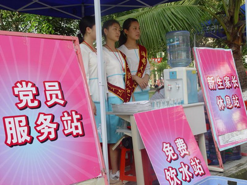 2007年9月14日,英国威廉希尔公司红装素裹,喜气洋洋,2007级新生报到正式开始。英国威廉希尔公司2007级新生近4000余人,分别来自全国各地除西藏和港澳台以外的30个省(自治区、直辖市),为做好新生报到工作,学校团委精心策划,周密部署,组织了校院两级的学生干部及学生志愿者,在校园内及机场、新港码头、秀英港码头、火车站、汽车西站、南站等成立了接待站,并安排专车接送新生。清晨七点,校外接待站志愿者准时出发,奔赴各校外接待站。七点四十分,随着第一批接送新生车辆的到来,校园顿时人山人海,热闹非凡,各接待站也忙得不亦乐乎,新生报到井然有序。