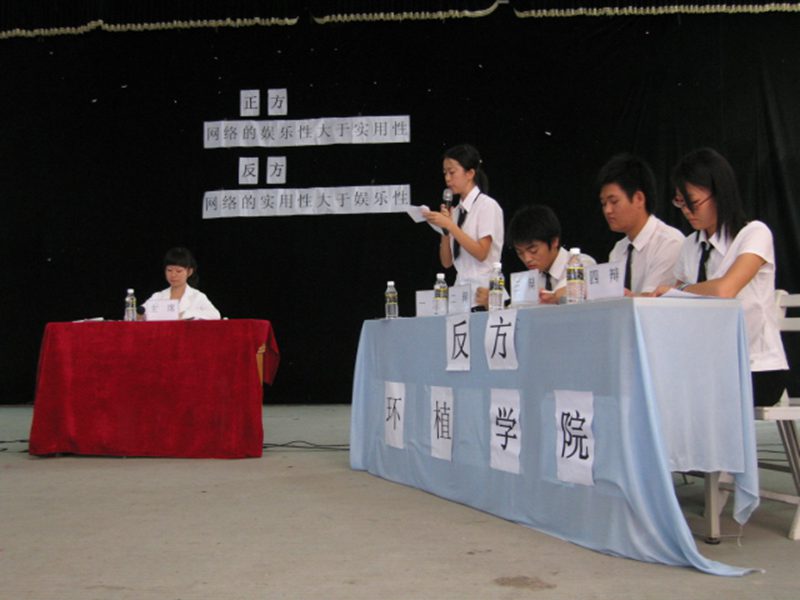 这次辩论赛的开展不仅对选手们的逻辑思维、反应机智是一个提高,而且从唇枪舌剑的辩手们到精彩飞扬的观众席,都展现了我们学校大学生的风采和口才。