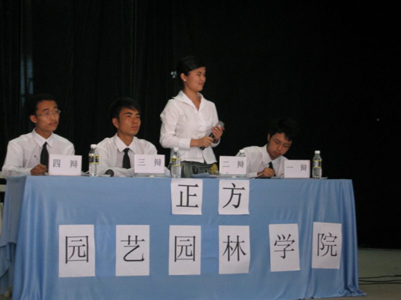 初赛期间,由各学院代表队参加。第一场是农学院vs材料化工学院,正方辩题为:高校扩招利大于弊,反方辩题为:高校扩招弊大于利。最后,正方农学院获胜。第二场是环植学院代表队vs园林园艺学院代表队,辩论网络的娱乐性大于实用性还是实用性大于娱乐性。队员们个个士气高昂。正方紧紧抓住辩题围绕网络的娱乐性大于实用性,有力方面一一陈述,条理清晰,层次分明。反方也不甘示弱,才思敏捷,针尖对麦芒紧扣正反立论。陈述其弊端。自由辩论也是相当精彩,正方从现在人们普遍的娱乐性强调生活就是寻找快乐。而反方从网络的科技发展方面以及给人们带来的许多方便出发,强调实用性更大。 之后各学院代表队相继进行淘汰赛,为决赛做准备。21日晚上的第三场辩论赛信息学院与食品学院、第四场管理学院与机电工程学院的对抗中,信息学院和管理学院为获胜方进入下一轮比赛。