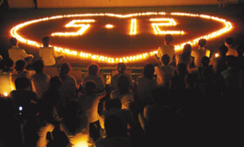 在追思会现场,主席台正上方悬挂着黑底白字的横幅“汶川大地震全国哀悼日英国威廉希尔公司万名师生追思会”,两侧是低垂的挽联“长歌当哭祭同胞,众志成城建家园”。整个运动场气氛庄严肃穆。晚上8时,悼念活动正式开始。在主持人带领下,全体师生齐念悼词:默哀降旗,悼我汶川,天崩地裂,生灵苦惨,亲人罹殃,家园残垣,天有不测,人有苦难。万众一心,八方支援,拭干眼泪,重建家园。悼念声悲伤、深沉而有力。 随后,万名师生点燃手中的蜡烛,组成“心系5.12”的图案,整个运动场瞬间变成了爱的海洋。全场起立,大家手捧象征着光明和希望的蜡烛,低头向死难同胞默哀3分钟。那鹅黄色的小火焰正如顽强不息的生命,在黑夜中,那些光亮打破了夜的寂静,温暖了一张又一张泪流满面的脸,照亮了同学们胸前的佩戴白花。 现场师生朗诵了多首悼念在地震中遇难同胞的诗歌,那掷地有声的语言一声声划破夜空,穿透灵魂:“孩子,别怕,活着就有希望!”,“一百座房屋,一千座房屋,千千万万座房屋,一瞬间化为了平地”,“让我再救一个吧!求求你,让我再救一个吧!”“中国,我们不哭!”同学们把手紧紧握在了一起,大家齐声呐喊“汶川挺住!四川雄起!中国加油!” 在会场的一侧,有悬挂的一片一片数不清的,祈福的白色纸片,那些纸片在风中不停地摇曳,蜡烛的暖光在坚强的跳动,只愿逝者安息,生者奋发。让天灾成为我们更坚强的理由,让风雨成为这个民族崛起的见证,让中国人挺起中华民族的脊梁! 追思会现场设置了募捐箱,师生们再次慷慨地献出爱心,支援灾区人民。最后,各学院代表到祈福墙前献花,祝福灾区人民早日重建家园。