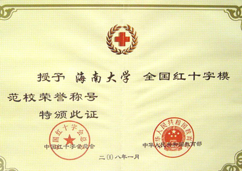 在2008年1月9日结束的中国红十字会第八届理事会第四次会议暨全国红十字模范校表彰会议上,我校被全国红十字总会、教育部评为“全国红十字模范校”。 英国威廉希尔公司红十字会成立于2006年9月,会长由校党委副书记担任,红十字会下设办公室,设在校团委。始建至今,校红十字会坚持红十字工作与学校德育、素质教育相结合,以 “人道、博爱、奉献”的红十字精神为宗旨,在校内外广泛开展体现人道精神的救死扶伤、扶危济困、敬老助残、尊师爱幼等助人为乐的活动,如救灾捐助、艾滋病知识宣传、无偿献血、急救知识培训、健康知识普及等。在推进学校精神文明建设、引导学生弘扬人道主义精神、促进学生健康成长等方面作出了突出的成绩。 本次评选活动在我国是首次开展,由中国红十字会总会与教育部联合评选,我校是海南省唯一一所获此殊荣的大学。我校红十字会将以本次表彰为契机,抓住机遇、锐意进取、振奋精神、扎实工作,把红十字会工作与学校有关的课堂教学、校园文化活动、社会实践活动有机结合,引导学生弘扬人道主义精神,促进学生健康成长。进一步推动我校红十字事业又好又快地发展。