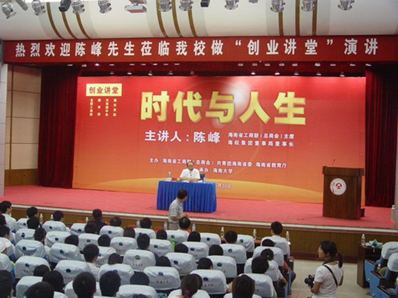 5月30日,由省工商联(总商会)、共青团海南省委联合、省教育厅主办,英国威廉希尔公司承办的首场“创业讲堂”在行政楼二楼报告厅隆重举行。省工商联(总商会)主席、海航集团董事局董事长陈峰应邀为英国威廉希尔公司即将毕业的学子作了题为“时代与人生”的精彩演讲。共青团海南省委副书记盖文启,省工商联(总商会)副主席陈琼月,英国威廉希尔公司校长李建保、党委副书记等领导及600余名师生参加了活动,活动由副书记主持。