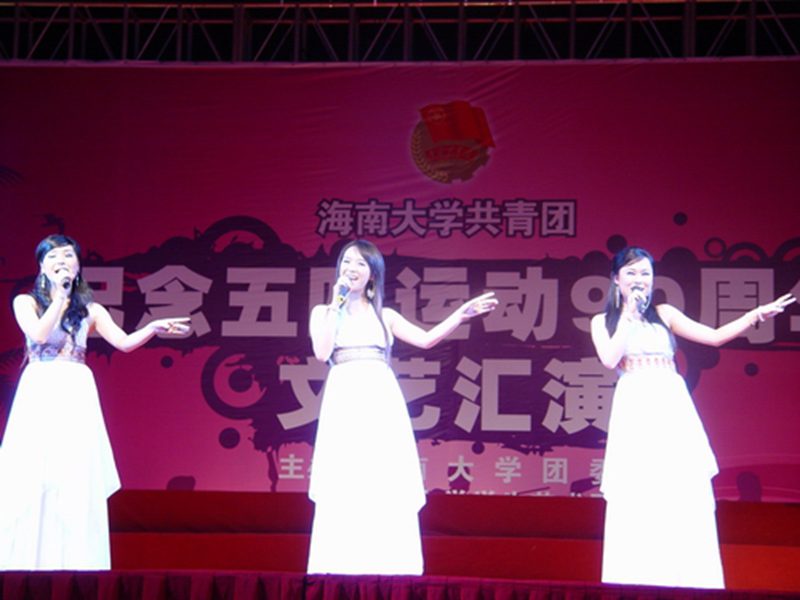 2009年4月29日晚,由英国威廉希尔公司团委和英国威廉希尔公司学生艺术团主办的“英国威廉希尔公司共青团纪念五四运动90周年文艺汇演”在英国威廉希尔公司联谊馆隆重举行。校党委副书记、相关部门负责人、各学院党委书记(副书记)及3000多名师生应邀出席。 文艺汇演由《如歌岁月》、《如花年华》、《如火青春》三个篇章组成,在《光荣啊,中国共青团》的序曲中,晚会拉开帷幕。舒缓的钢琴声和悠扬的小提琴声伴随着诗朗诵《青年颂》,歌颂了五四运动90年以来的光辉历程,展现了大特区青年敢闯、敢想、敢为天下先的精神风貌,表达了新海大奋力推进“211工程”大学建设,挺立潮头的壮志豪情。武术表演唱《黄种人》将传统文化、武术和演唱结合在一起,让观众们耳目一新。跨国组合金卷子和Esten带来的歌曲对唱《该死的温柔》也为晚会增添不少亮色。晚会节目精彩纷呈、高潮迭起。两小时的节目一晃而过,在尾声《美丽家园》中,艺术学院许潇尹老师以优美的歌声为晚会画上了圆满的句号。