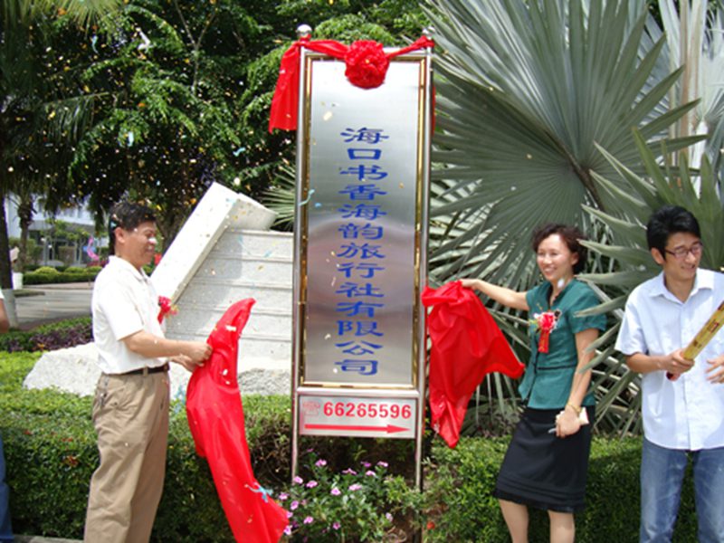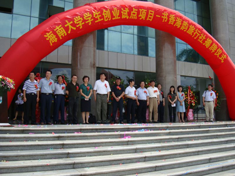 为了响应和贯彻《2009年海南共青团促进青年就业创业行动实施方案》文件精神,重树海南旅游服务新形象,为海南国际旅游岛的建设贡献力量,我院积极参与、大胆创新,并于2009年5月15日上午10:30在英国威廉希尔公司旅游学院四号教学楼前广场隆重举行了海南省大学生创业试点项目——海口书香海韵旅行社有限公司挂牌仪式。