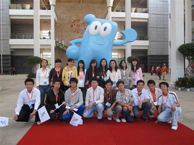 我校部分志愿者在“海宝”前合影留念