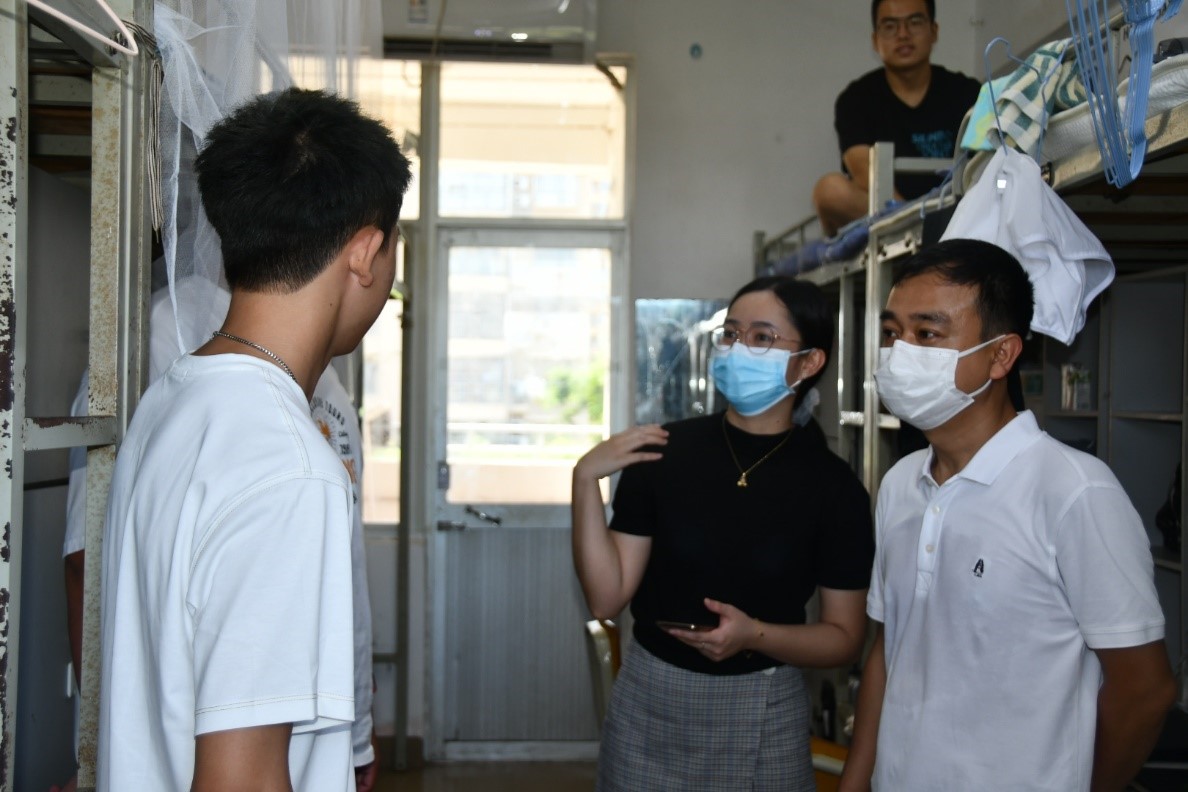 学院领导班子密切关注迎新工作,院长李宜钊、副书记邢红斌赴新生报到现场检查和指导现场工作,并与学生代表进行亲切交流。并与李宜钊新生班主贾培宏、吴方彦、蒲罗曼、徐江涛与辅导员王博耘、武丹一行走访新生宿舍,询问新生入学情况,体现公管大家庭的人文关怀。