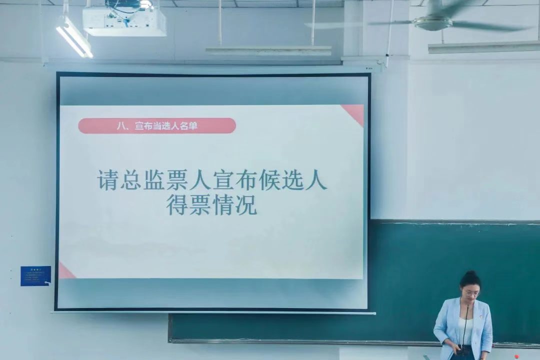 在介绍完六名候选人的情况后(以姓氏笔画排序)后,秉承着公平公正的原则,各位学生代表填写选票并投票。最后由总监票人董慧珍及相关工作人员计票。