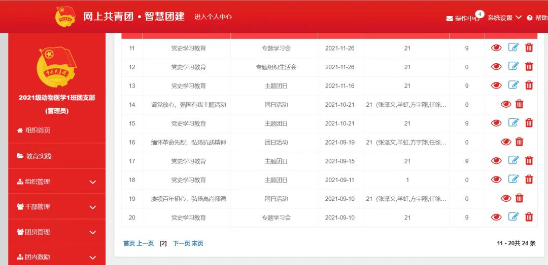 迄今为止,团支部共计开展过20次团日活动,活动收获了部内成员的一致好评。无论是线上还是线下,无论是在学校还是假期中,2021级动物医学1班团支部的每一次团日活动参与率总是100%。各团员在活动中也是认真听取团支书的讲解,并在会后做好各自的感悟总结。也正是因如此,支部的团日活动曾多次得到表彰,是团内活动开展的典范。