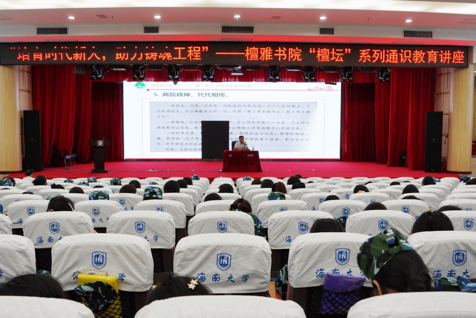 为了让同学们深入了解学校的历史,感受前辈们的艰辛革命历程,3月5日晚上,檀雅书院在科教楼报告厅开展“檀坛”系列通识教育系列讲座之“应国家战略而生,为国家使命而战”,主讲人为中国热带科学院退休老干部陈海青,报告会由檀雅书院团委书记庞小钦主持。