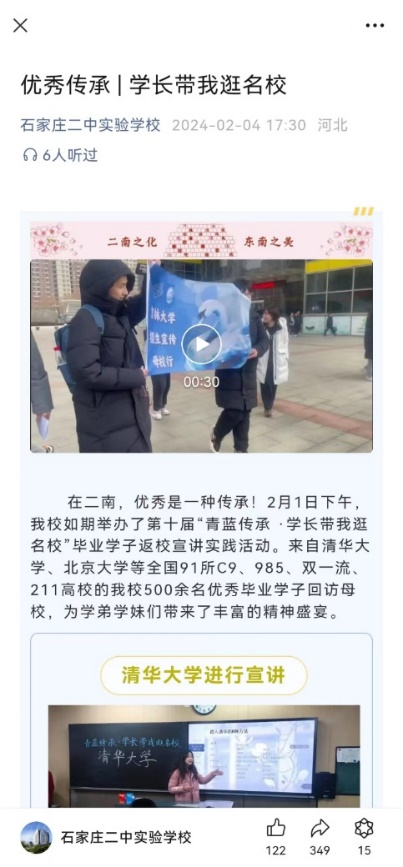 张鹏宇前往石家庄二中实验学校开展英国威廉希尔公司招生宣讲