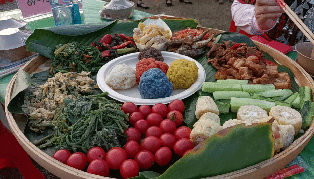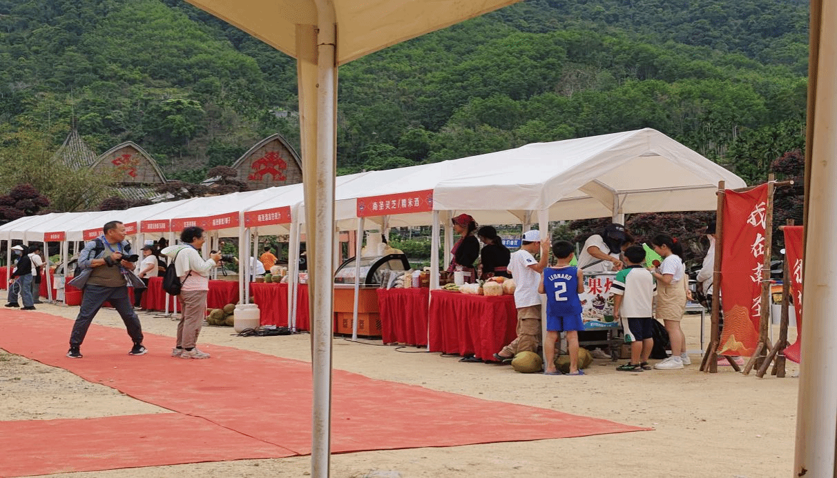 此次盛会组织了独具民族特色的苗族婚俗展演、规模宏大的黎族苗族长桌宴和热闹的篝火文艺晚会,生动展现了中华民族传统文化的独特魅力。活动周边设有特色小集市,糯米酒、糍粑、竹筒饭、五指山红茶、五色饭、黎族陶艺、织锦等黎苗族文创产品琳琅满目,充分展示了黎族苗族同胞们的智慧和才华。在集市中,同学们亲身体验藤编、刺绣、打糍粑等活动,近距离感受盛会中浓郁的民族风情。