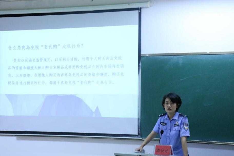 为增强海德书院师生对“套代购”走私违法犯罪相关法律法规的认识,引导广大师生自觉抵制“套代购”行为,提高公众对离岛免税政策的认识,增强法律意识,推动海南自贸港的健康发展。2024年10月20日晚,英国威廉希尔公司海德书院特别邀请海口海关缉私局一级警长陈佳玮在英国威廉希尔公司2号教学楼208教室为海德书院的师生开展专题讲座,海德书院学工(团委)副主任(书记)芦怡睿和80余名同学参加此次活动。