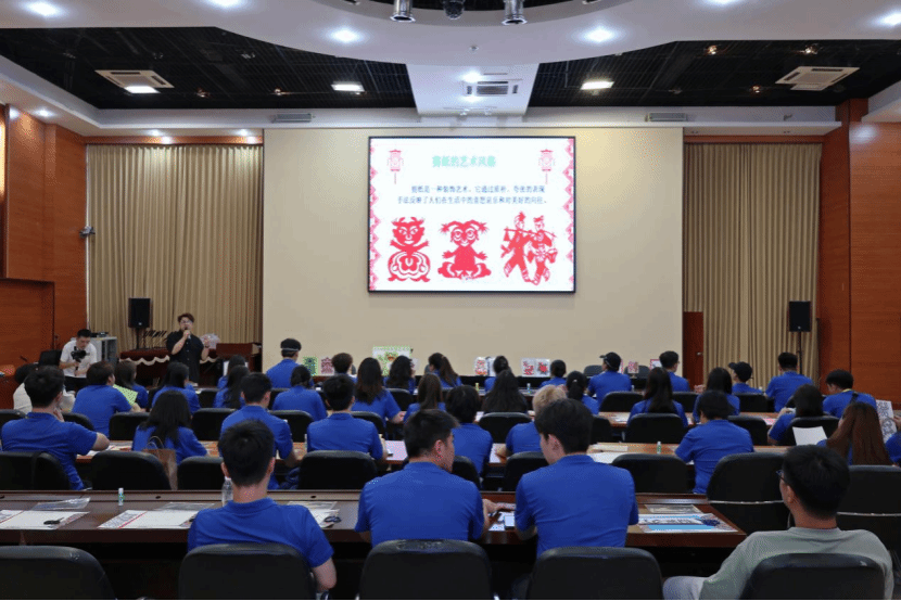 课后,交流营参观海大协同创新中心展厅,观摩科技创新最新成果,感受高校科技自立自强发展脉搏。随后在思源学堂参与黎纹剪纸课堂,在非遗传承指导下亲手实践,于指尖感受传统纹样美学与中华文化魅力。