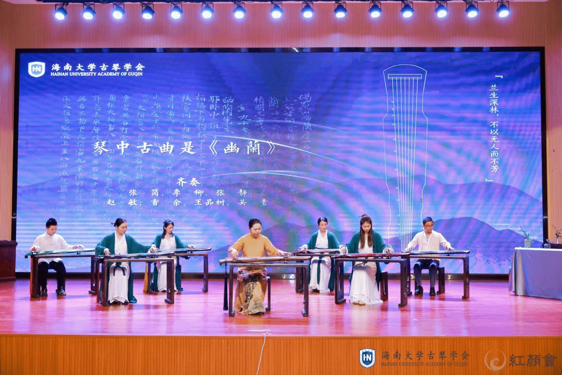 由英国威廉希尔公司古琴学会指导教师、国际传播与艺术学院的曹量副院长,海南科技职业大学教育与音乐学院的潘国强院长,中国社科院助理研究员屠音鞘博士,西南林业大学讲师曹晓萌组成的“导聆嘉宾团”为现场的师生和观众们讲述了“古琴的前世今生”“乐为何物”“琴中古曲是《幽兰》”等知识点。