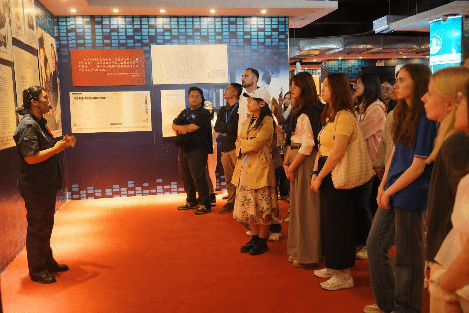 4月16日上午,热区高校青年领袖研学旗舰营成员参访文昌航天科普馆。这是青年营员们在认真聆听讲解。